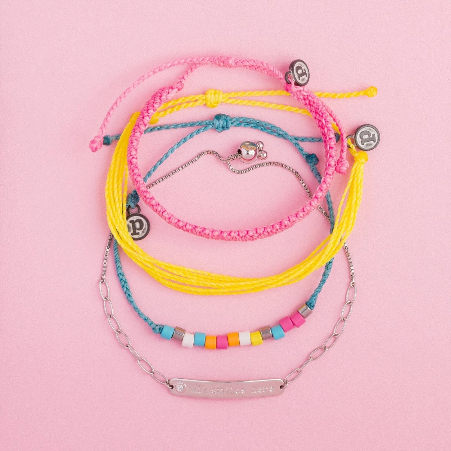 Two words: Charli. D’Amelio. Need we say more? If you’re obsessed with the TikTok star like we are, then you’re going to love this new influencer pack designed by the one and only, Charli D’Amelio!! It’s ALLLL smiles here with this bright and playful stack featuring 4 bracelets full of sunshine! This highly anticipated best-seller features bright shades of yellow, pink and blue, and includes a super cute beaded bracelet, a smile ready ID Bar Bracelet, an original yellow string bracelet, and a woven pink bracelet! This stack is sure to be your own personal pick-me-up!