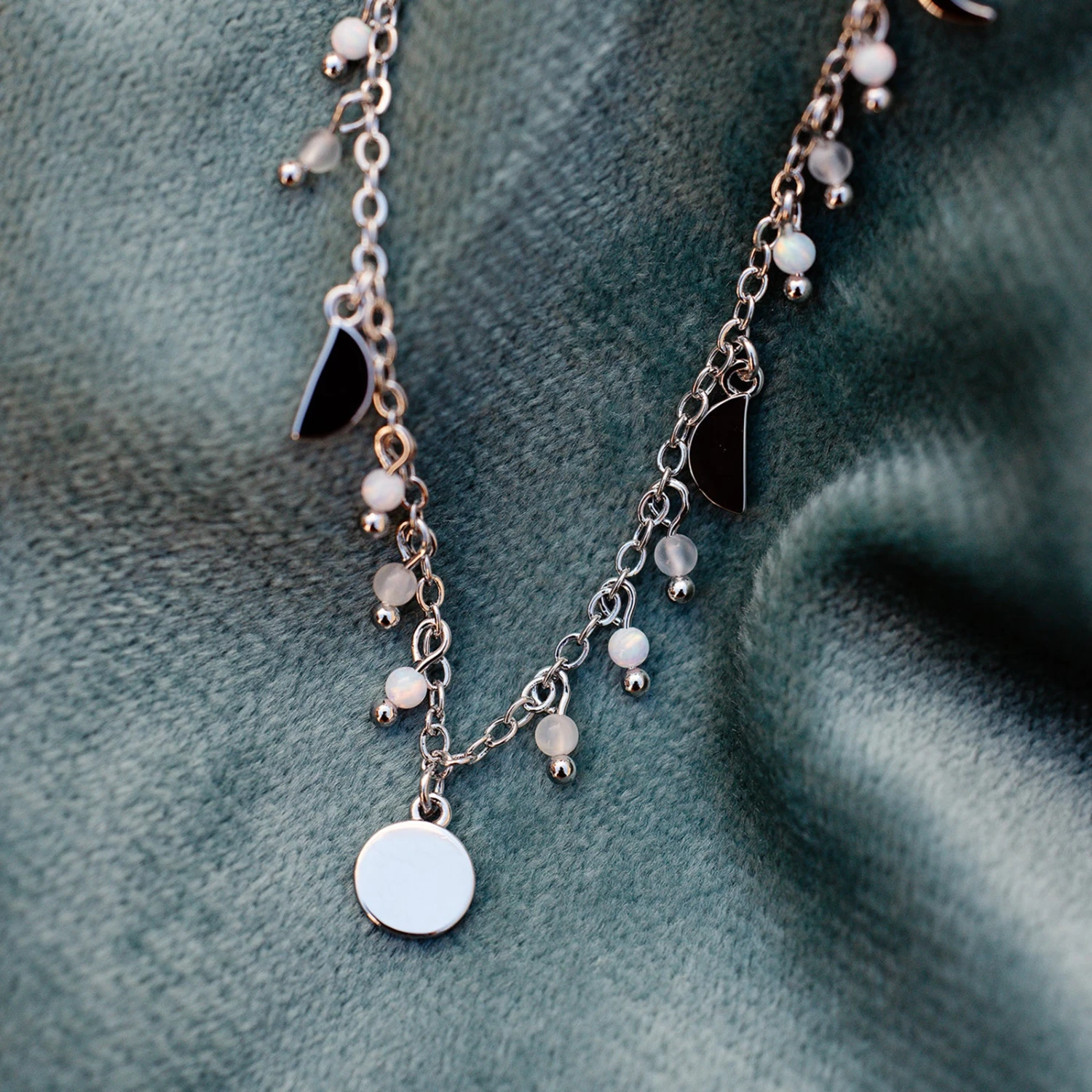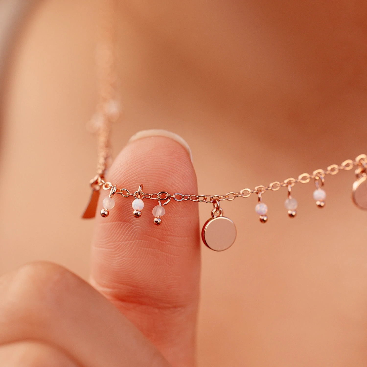 Add some glam to your necklace stack with the Bead & Metal Choker! This piece features mini moon phases with moonstone and opal beads in between, adding a dainty and elevated layer to your look!