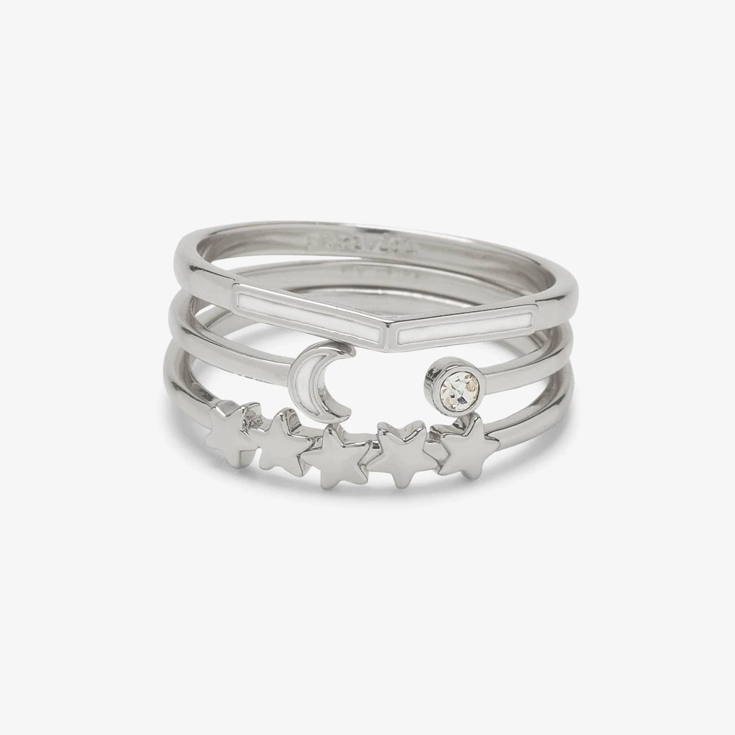 The stars have aligned to bring you the super elegant Crescent Stars Ring Stack, available in silver or gold! This set features 3 rings, wearable separately or as a star-studded stack.