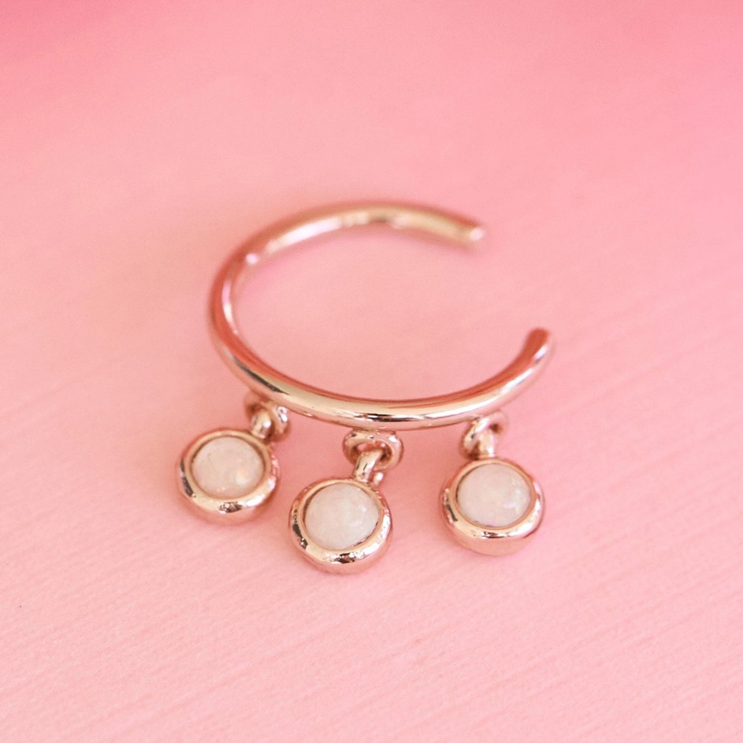 If you could describe your favorite music festival in four words it would be Dangling Opals Ear Cuff! Each open ended ear cuff comes with three dainty and dangling opal stones in blue or white with a rose gold or silver finish. Pair them with some of our chain wrap earrings and it’s a whole vibe.