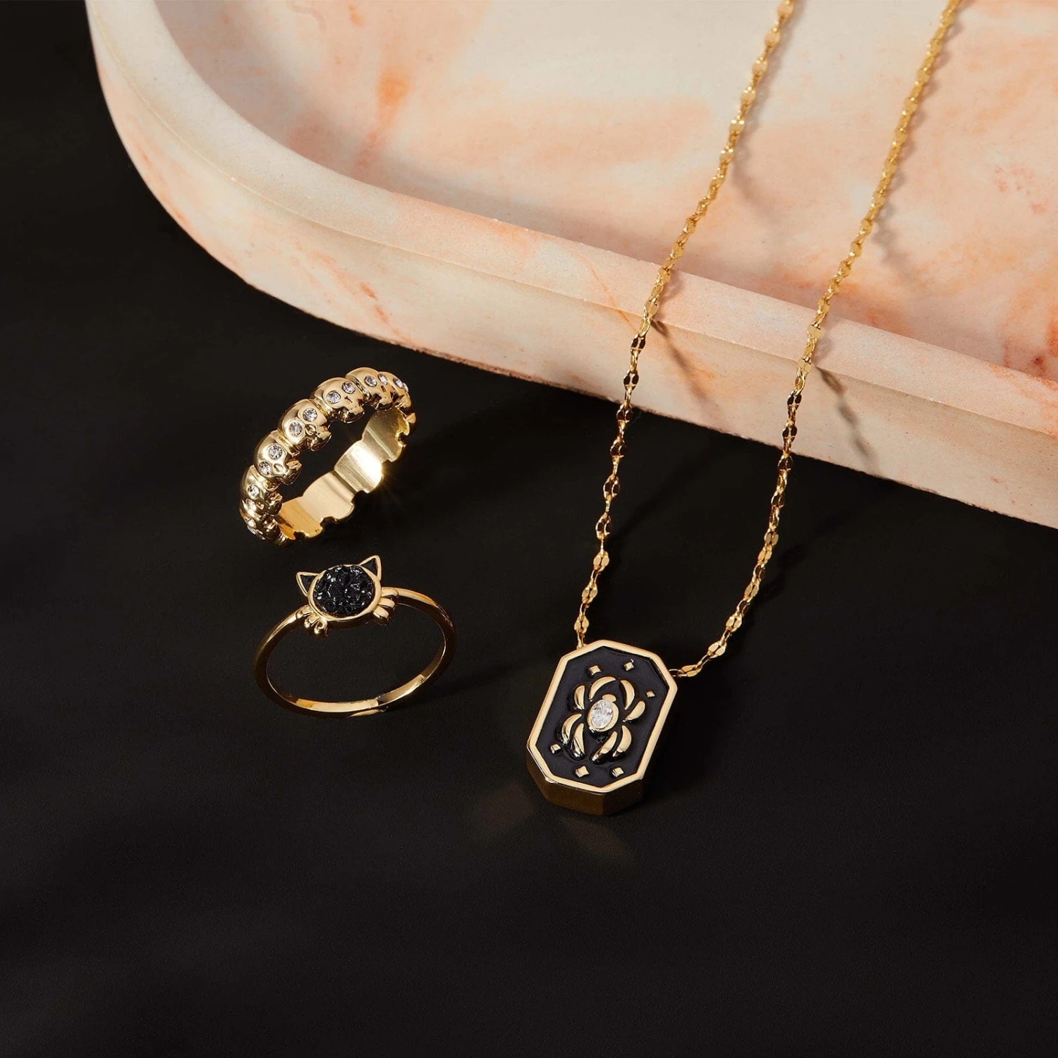 A purr-iceless addition to your ring rotation. The striking Druzy center stone seamlessly sits within a signature cat silhouette to create a unique feline focal point for your jewelry canvas.