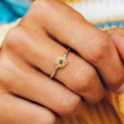 Need a little flower power? Then snag our Sunflower Ring! This too-cute style is set on a silver band, with a brightly enameled sunflower charm for the perfect pop of color. Pair it with the matching Sunflower Choker and Earrings for a super-fresh set.
