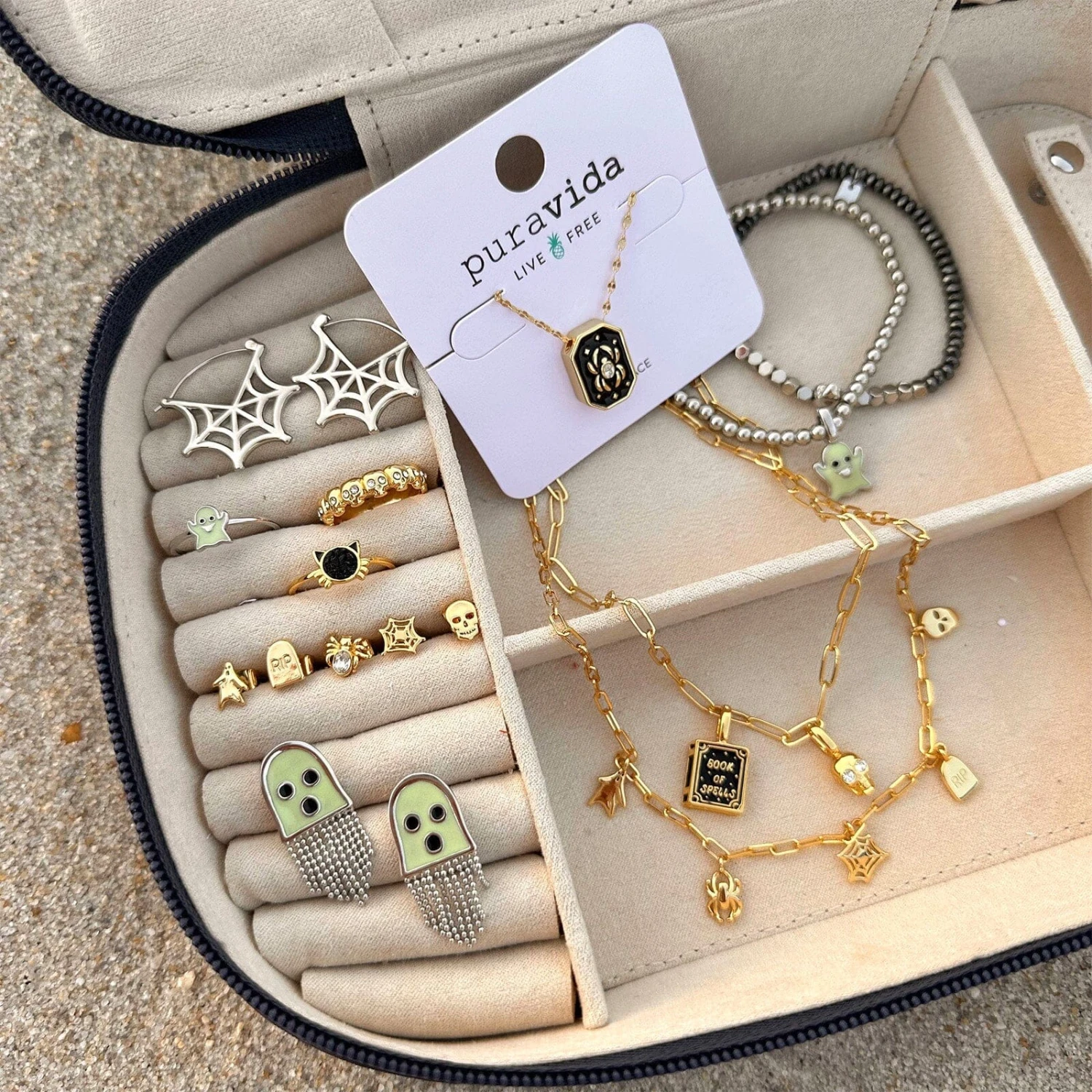 Behold: your spooky ear stack must-haves. This pack boasts five unique silhouettes (Gravestone, Ghost, Spiderweb, Spider, and Skull) to add a seasonal flare to your existing pieces.