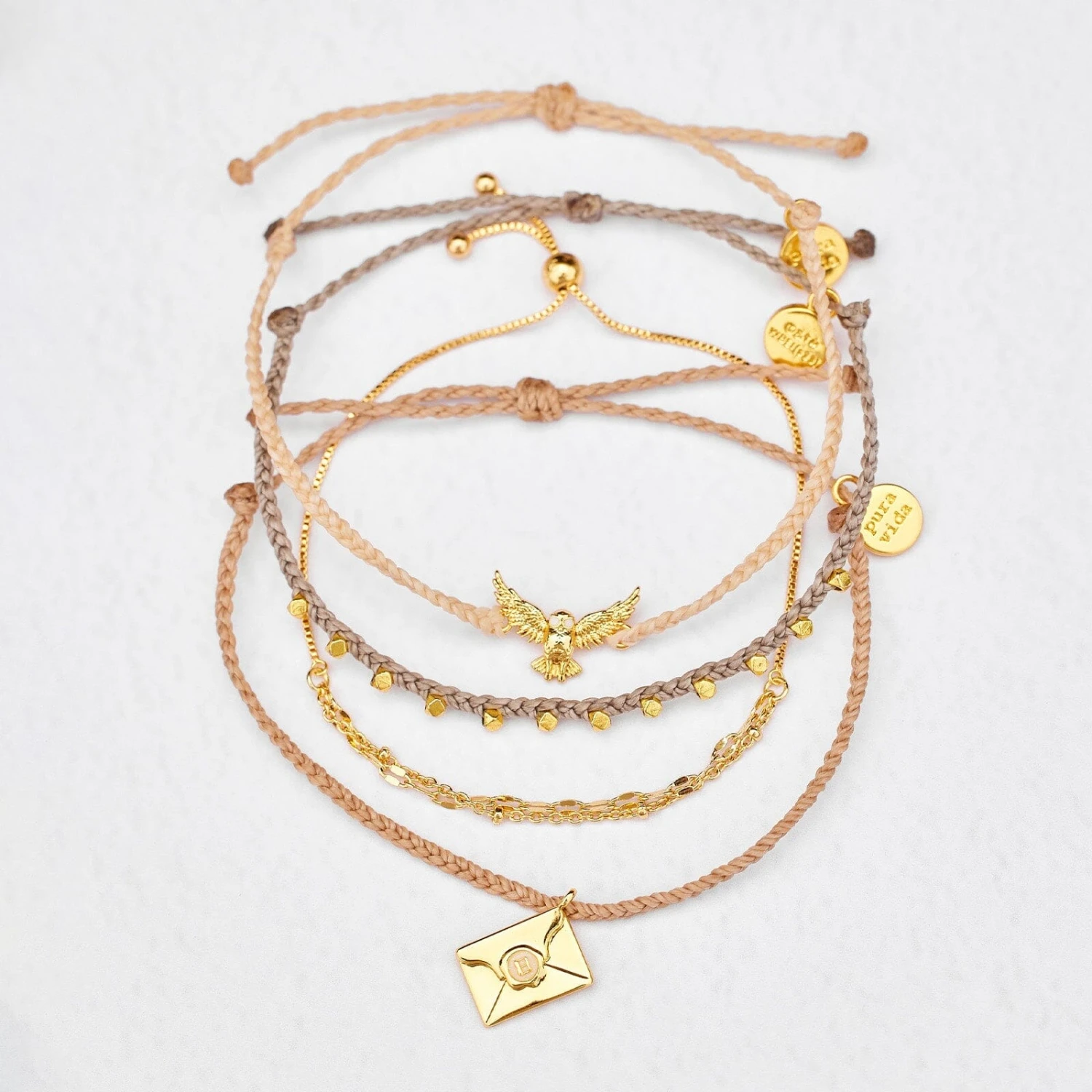 The second-best thing to getting accepted at a school of magic? Our Hogwarts Letter Style Pack! This four-piece stack includes a gold-studded Malibu bracelet, a golden layered slider style, a Hedwig charm design, and a bitty braid bracelet with your very own Hogwarts letter charm. For every style pack sold, Pura Vida will donate 5% of the purchase price to the World Literacy Foundation, with a maximum donation of $25,000. Your donations will help further the World Literacy Foundation’s mission to ensure that every child—regardless of geographic location—has the opportunity to acquire literacy skills and books to reach their full potential!