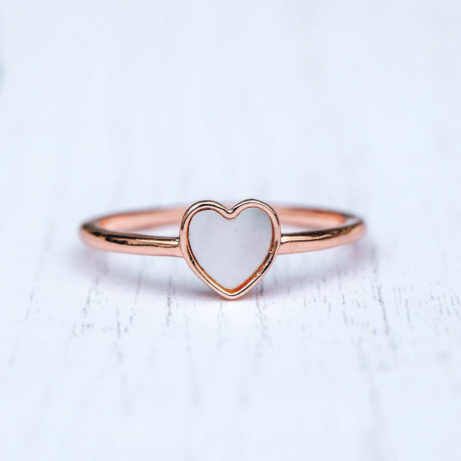 Our motto: Always follow your heart. *Especially* when it’s leading you to our Heart of Pearl Ring! This stackable style comes in two metal finishes—silver and rose gold—with a heart-shaped charm filled with a Mother of Pearl stone. Each stone is 100% genuine, so no two look alike (all the more reason to buy one of each!).