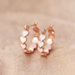 Could you ask for a pair of earrings that were amour adorable?! Our Love Hearts Hoop Earrings come in two color combos—silver with red enamel and rose gold with champagne pink enamel—and feature a “LOVE” inscription on the inside of the hoop for an extra dose of romance.