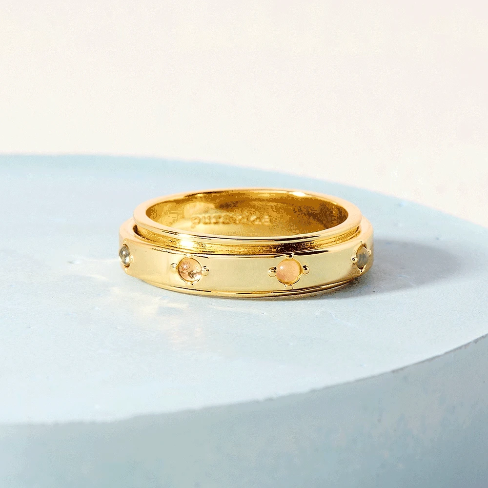 Put your mind at ease and give off super-chill vibes with our Mental Health Awareness Fidget Ring. This rotating ring lets you spin the band to alleviate anxiety, and features an array of gorgeous gemstones to heal your spirit: