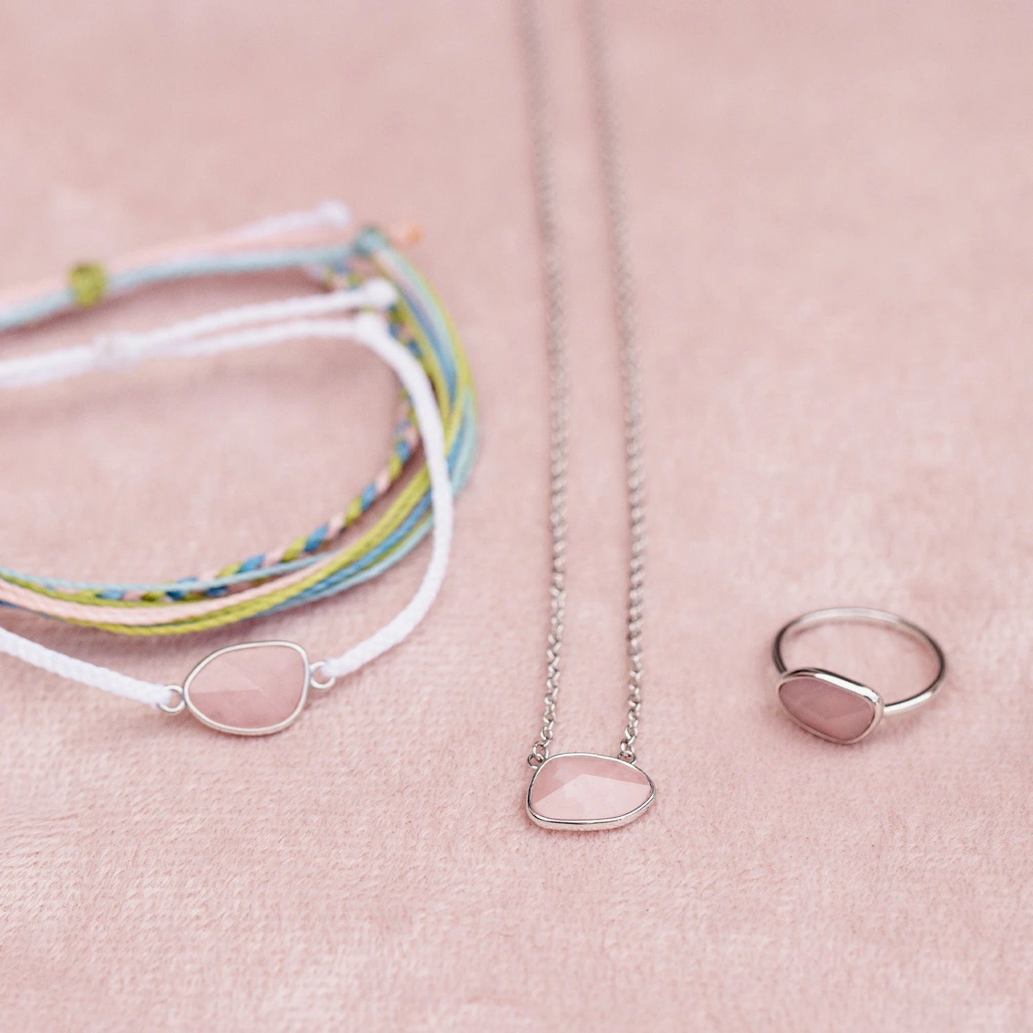 Show yourself a little unconditional love with our Mental Health Gemstone Ring. This chic silver style features a delicate band and genuine rose quartz stone, which is faceted for a little extra sparkle.