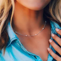 Step one in looking like a mermaid: Wear our Multi Gem Pearl Choker! This ultra-elegant design features a delicate silver or rose gold chain accented with shimmering pearl beads. Wear it solo for a simple beach-day look, or match it to our Pearl and Shell Earrings for the chicest seaside style.