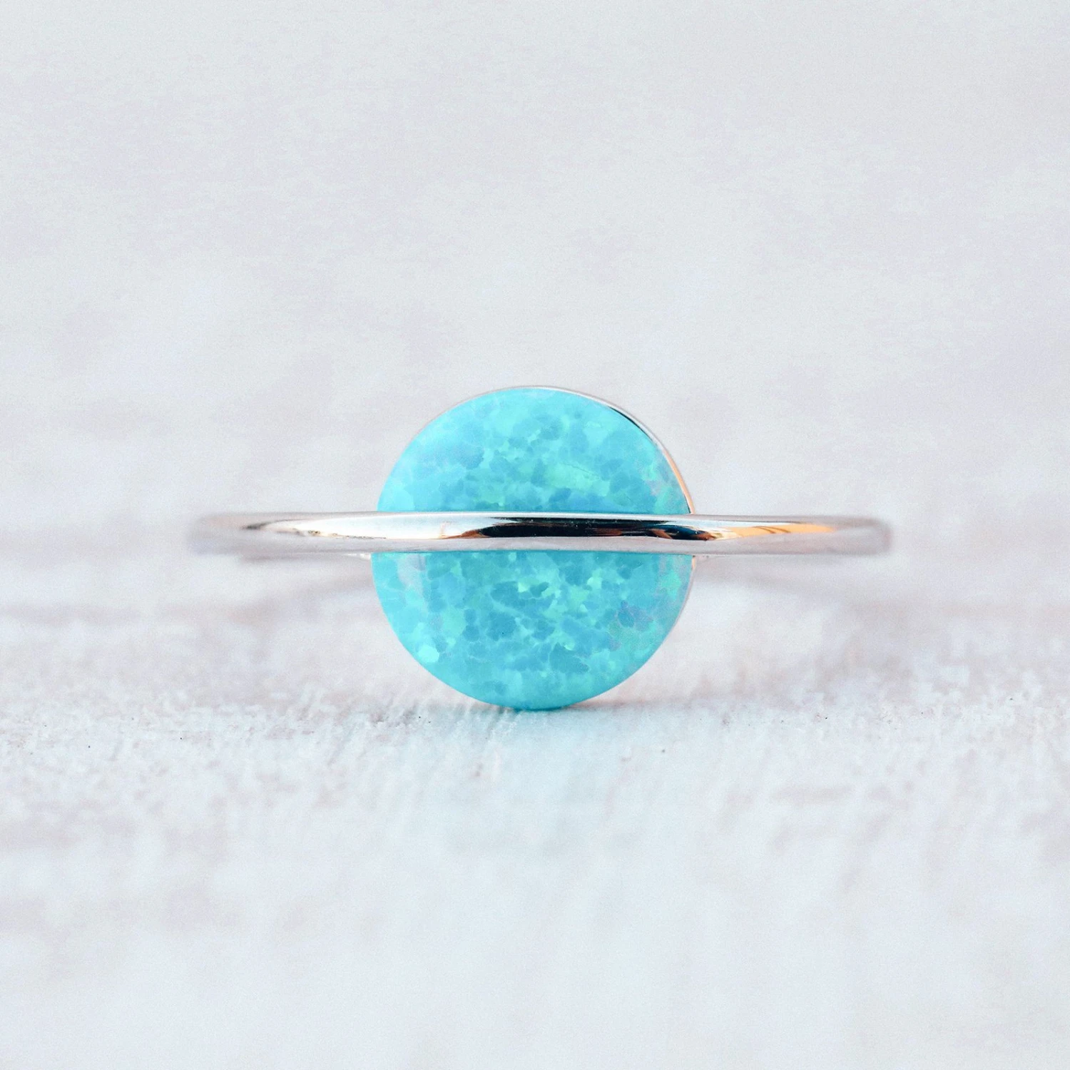 The stars all aligned to bring you our Opal Saturn Ring. This space-inspired style comes in two metal finishes—silver and rose gold—with a glittering opalescent filling in blue or white. Each stone is one-of-a-kind, so no two rings look alike!