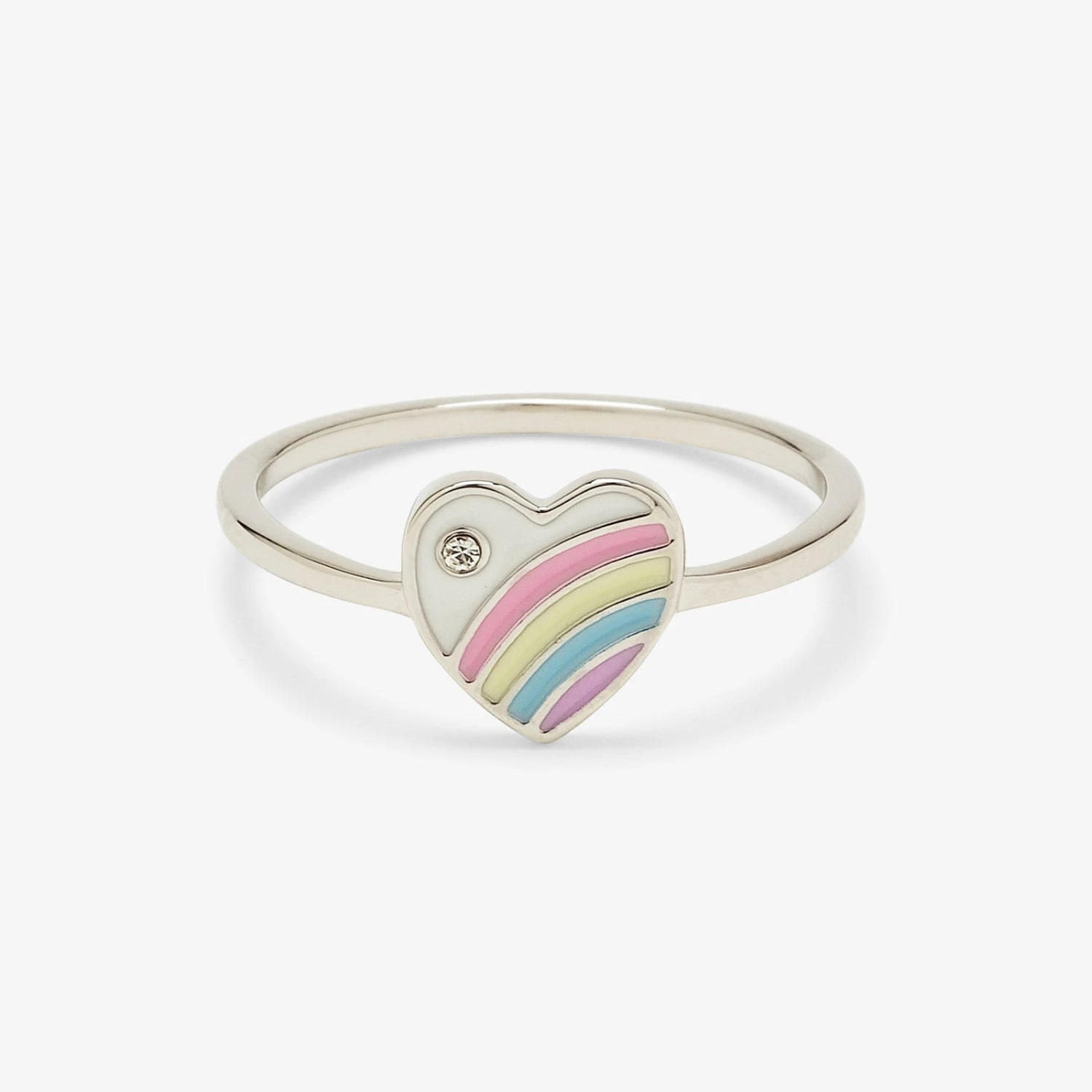 Make your style psychedelic with our Pastel Vintage Heart Ring. With a delicate silver band and major ‘70s vibe, it features an enameled heart charm and tiny glass stone for a hint of sparkle.