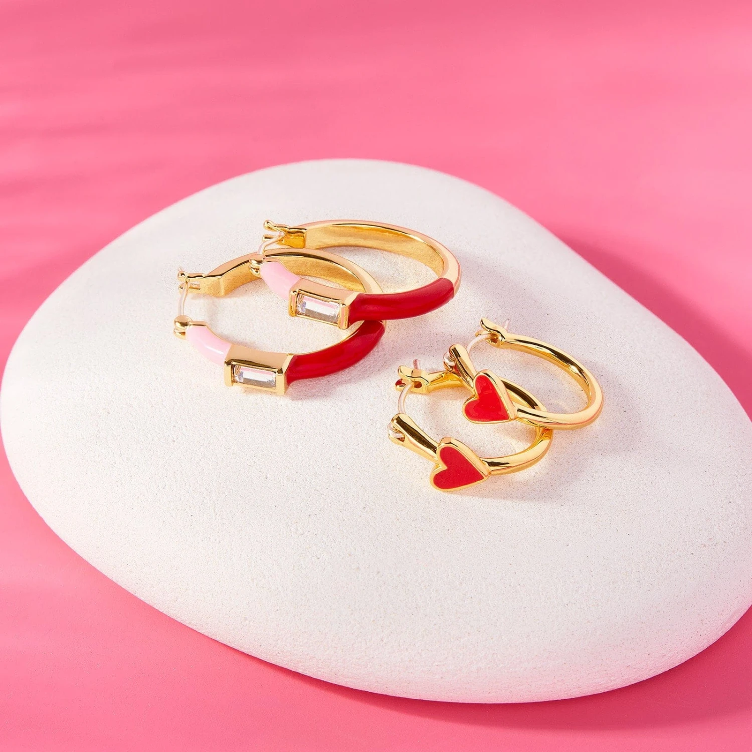 Why wear your heart on your sleeve when you can wear it on your ear?! Our Petite Heart Hoop Earrings are sweet and chic, with tiny enameled hearts that you’re *so* gonna love.