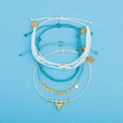 You don’t have to wait for Shark Week to show off your Shark Shore Pack! This four-piece set includes a gold mini coin bracelet, a shark tooth charm bracelet, a mini braided bracelet and a beaded Malibu bracelet. Get ready to dip your toes in the water with your new favorite stack!