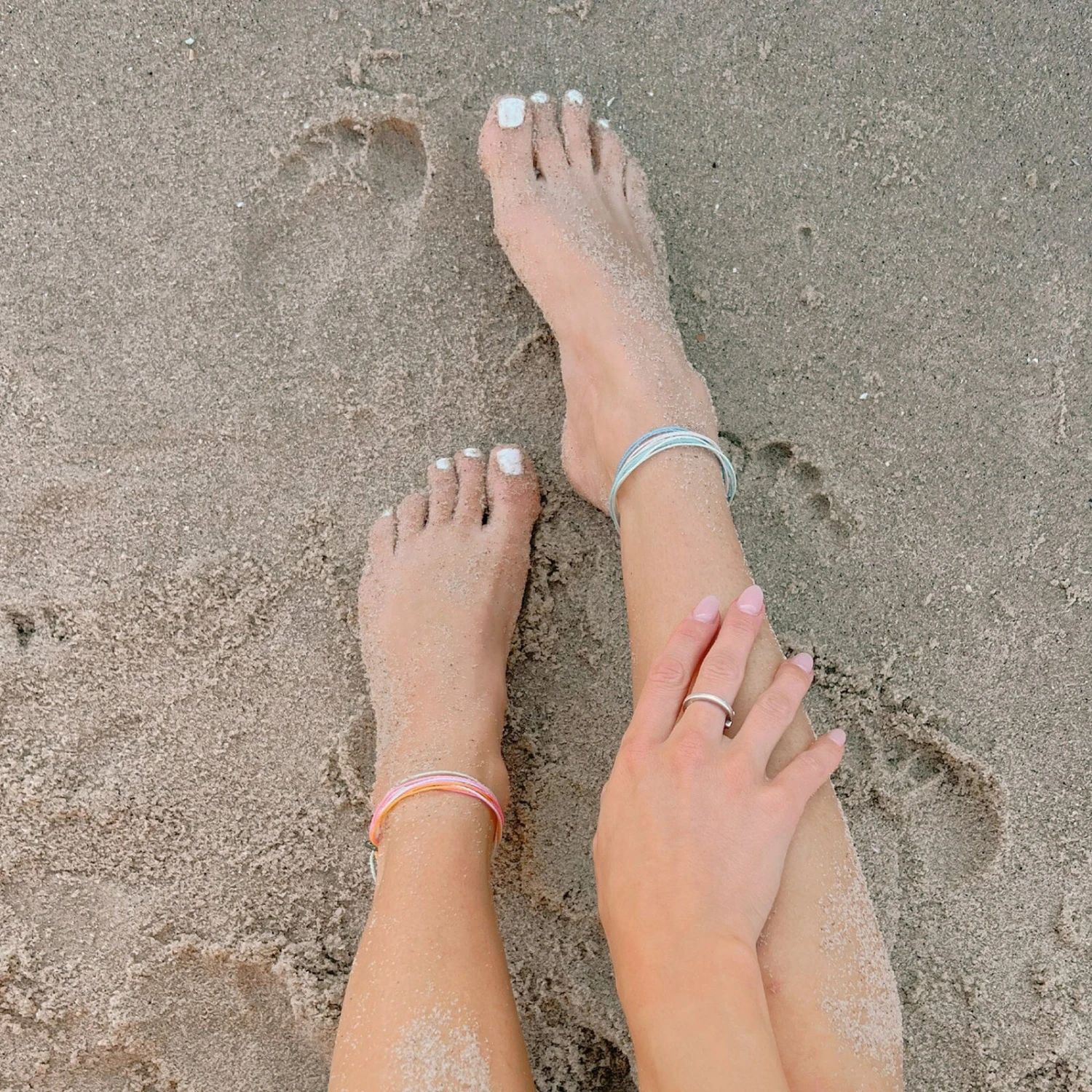 Slightly larger than our original bracelets, your ankle can now be as stylish as your wrist! Every anklet is 100% waterproof. Go surf, snowboard, or even take a shower with them on. Wearing your anklets every day only enhances the natural look and feel. Every anklet is unique and hand-made therefore a slight variation in color combination may occur.
