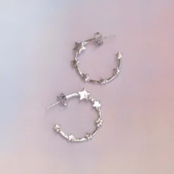 Shoot for the stars in our Starlight Hoop Earrings. This sleek silver pair is accented with a constellation of star charms for a little Milky Way magic. Hint: Wear it with our Celestial Malibu Bracelet for a totally lunar look.