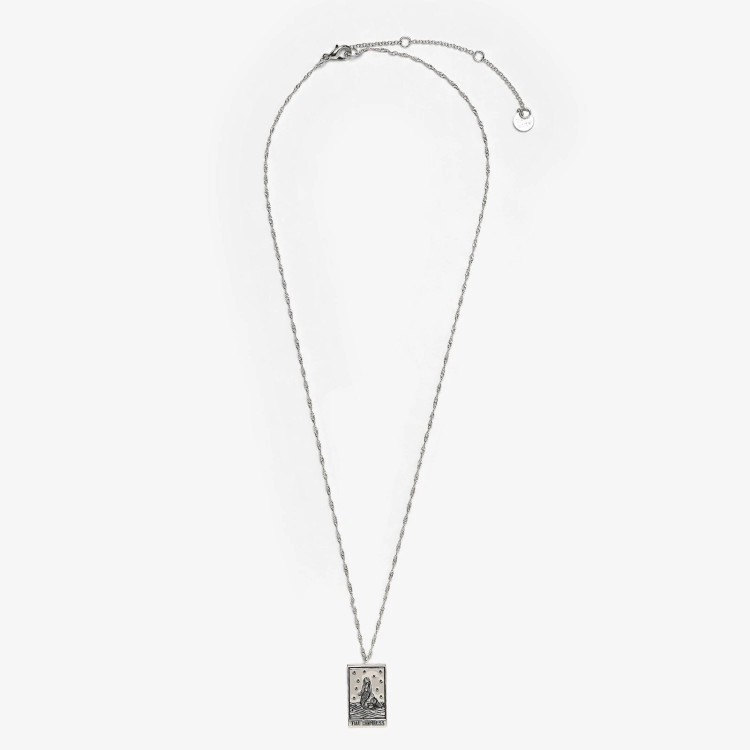 Get a glimpse into your future with our Tarot Card Pendant Necklace. Available in two metal finishes—silver and rose gold—this ready-to-layer style comes with a twisted rope chain and dangling tarot card pendant. Choose from the Lover, signifying finding harmony within yourself; the Star, symbolizing inspiration and renewed optimism; the Sun, foretelling good fortune and happiness; the Moon, representing intuition and imagination; and the Empress, symbolizing femininity and creative expression. (Or play your cards right and get all five!).
