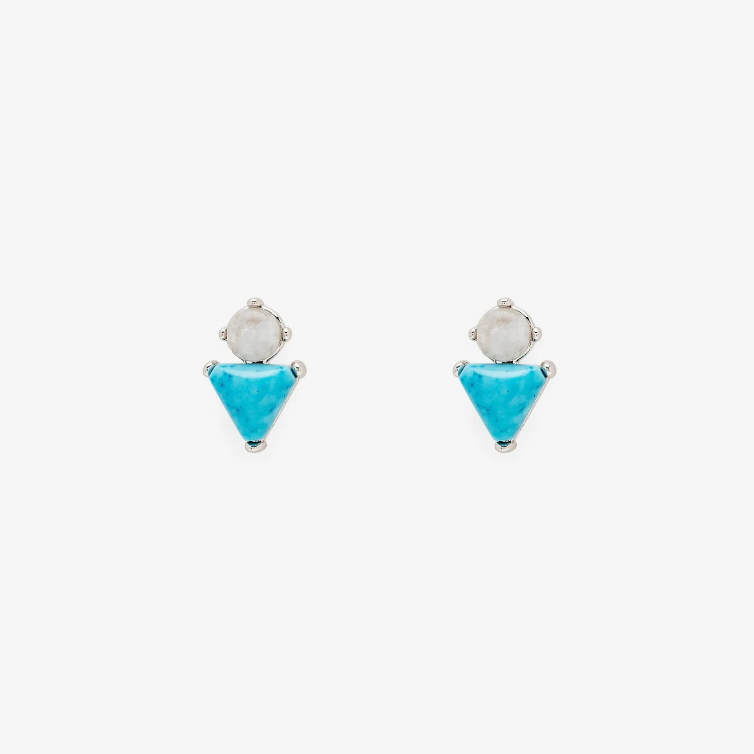 Go boho with our new Turquoise and Moonstone Stud Earrings! Each earring features a turquoise stone with a moonstone sitting pretty on top to give you ultimate music festival vibes.