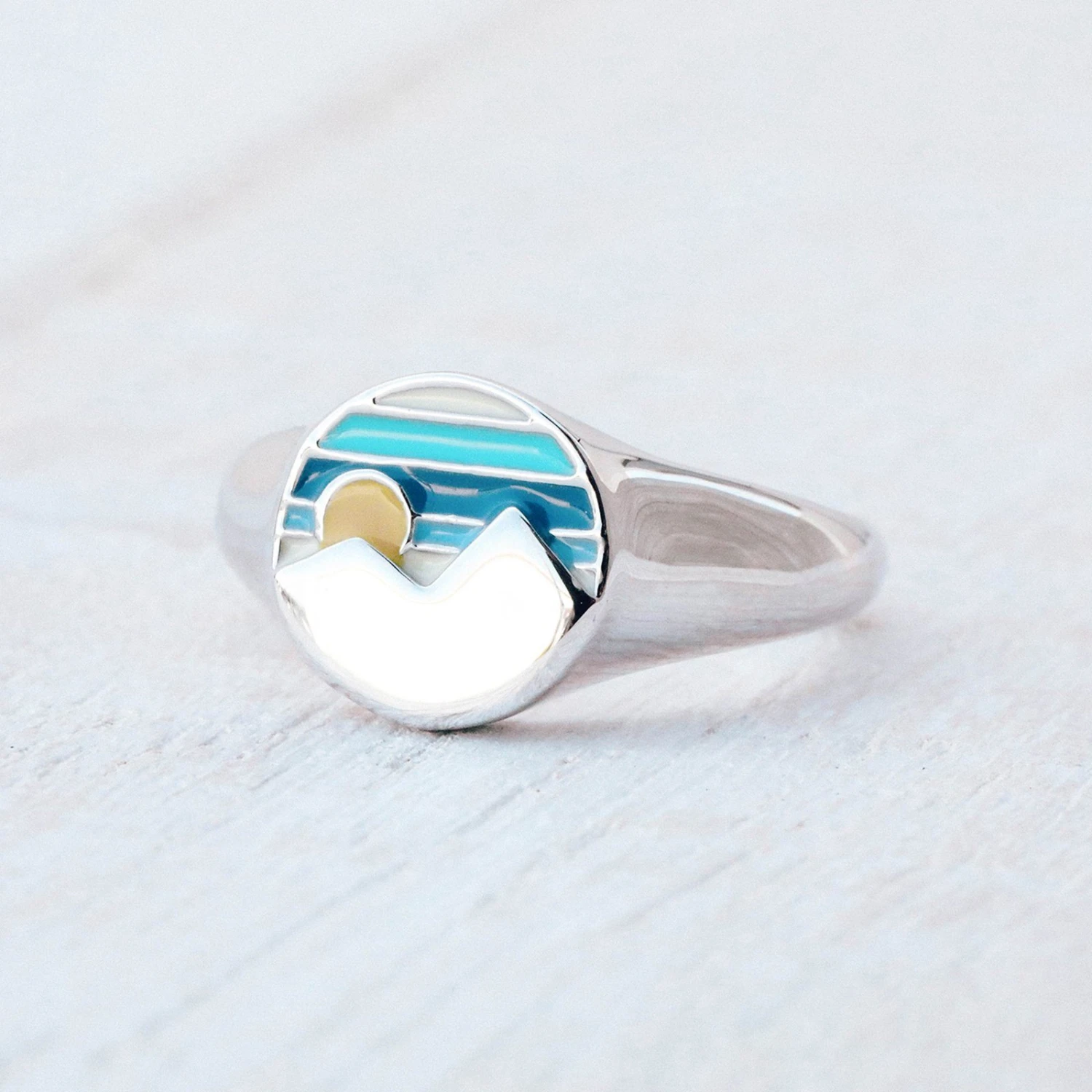 We’d move mountains to get our hands on the Twin Peaks Signet Ring! This intricate design comes in a sleek silver finish, with a cute and colorful enameled scene of the sun rising over the mountains. Pair it with our other Twin Peaks styles for an adventure-ready look.